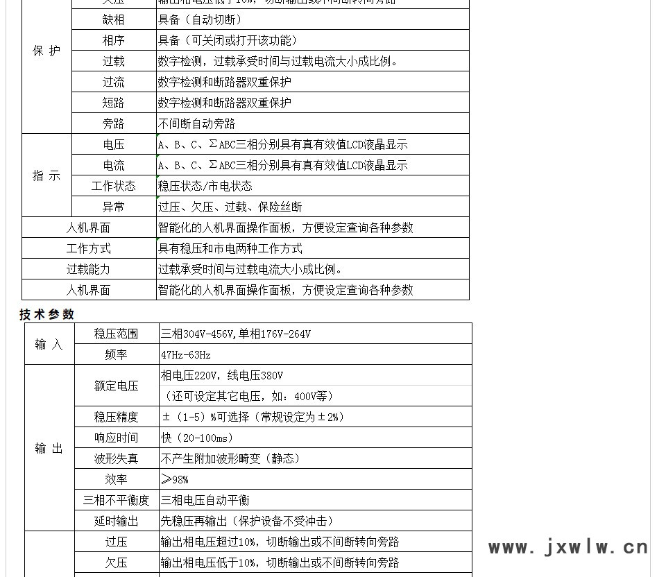 穩(wěn)壓范圍 | 三相304V-456V,三相176V-264V |