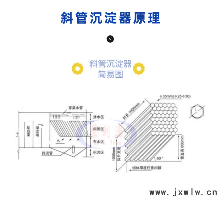 2.斜管斷面一般為正六邊形,斜板斷面可為平行板,亦可為正弦波形板。