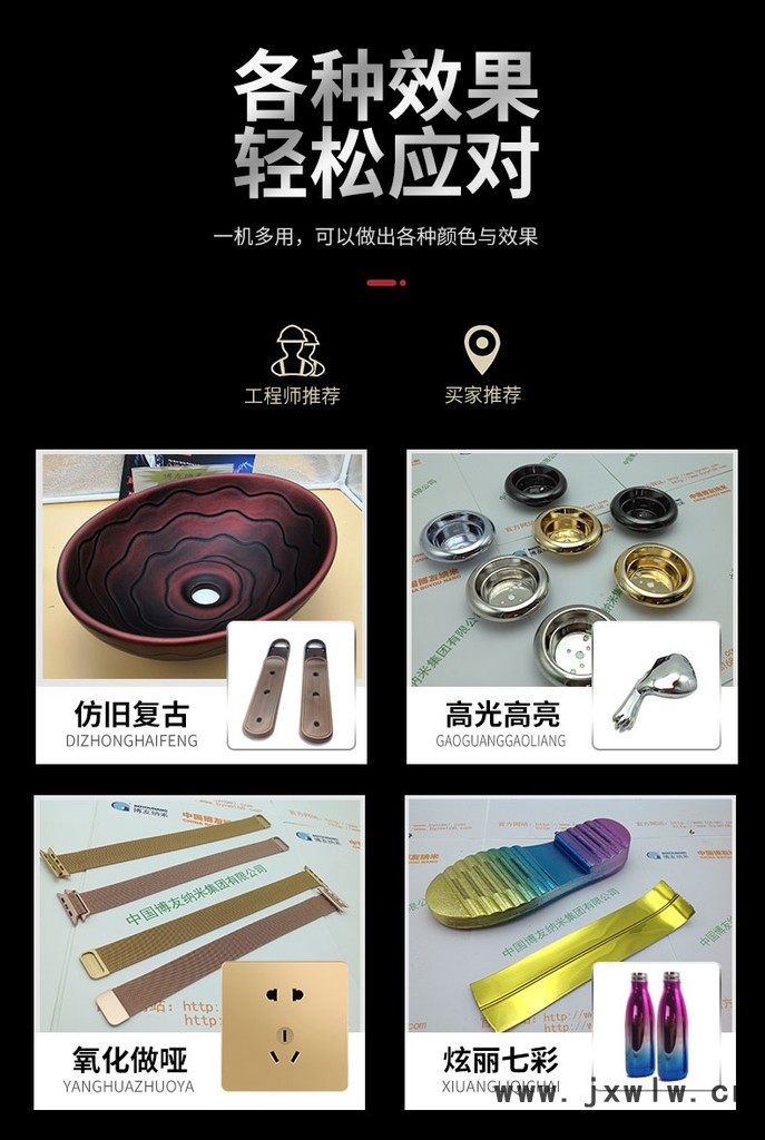 博友納米真空等離子電鍍加工博友納米噴鍍是采用專用設(shè)備和先進(jìn)的材料,應(yīng)用化學(xué)原理通過直接噴涂的方式使被涂物體表面呈現(xiàn)金、銀、鉻及各種彩色(紅黃紫綠藍(lán))等各種鏡面高光效果。無需做復(fù)雜的前期處理,不用做導(dǎo)電層。工藝簡單、綠色環(huán)保、用途廣泛、是一種高新的表面處理技術(shù),可完全替代電鍍、真空鍍的一項(xiàng)新技術(shù)。 納米噴涂技術(shù)怎么樣 納米噴涂是納米技術(shù)在工程中的應(yīng)用,它是在物體表面形成一層致密納米涂層的新型噴涂技術(shù)。涂層內(nèi)含有高硬度、高耐腐蝕性納米材料,可以提供多種顏色和光澤,是一種環(huán)保、經(jīng)濟(jì)、耐用的表面處理。 納米涂層不是犧牲涂層,不提供犧牲保護(hù),表面劃痕可能引起原材料的侵蝕,但其卓越的耐酸、耐鹽堿性以及高強(qiáng)度、高穩(wěn)定性,在一定程度上可取代電鍍處理。 納米(符號為nm)是長度單位,原稱毫微米,如同厘米、分米和米一樣,是長度的度量單位,一納米大約**是0.000001毫米。 所謂納米技術(shù),是指在0.1~100納米的尺度里,研究電子、原子和分子內(nèi)的運(yùn)動規(guī)律和特性的一項(xiàng)嶄新技術(shù)??茖W(xué)家們在研究物質(zhì)構(gòu)成的過程中,發(fā)現(xiàn)在納米尺度下隔離出來的幾個、幾十個可數(shù)原子或分子,顯著地表現(xiàn)出許多新的特性,而利用這些特性制造具有特定功能設(shè)備的技術(shù)**稱為納米技術(shù)。