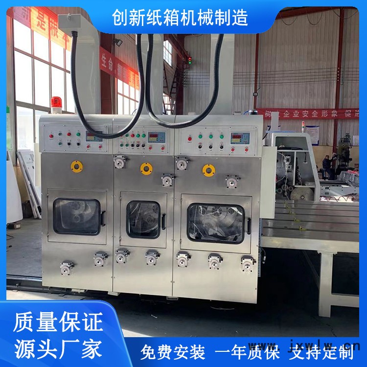 雙色印刷開槽于一體的多功能設備,本機采用水性網(wǎng)紋印刷,質(zhì)量可靠、印刷清晰、套色準確、分邊切口整潔、節(jié)能省力等特點。是生產(chǎn)紙箱的必備設備。