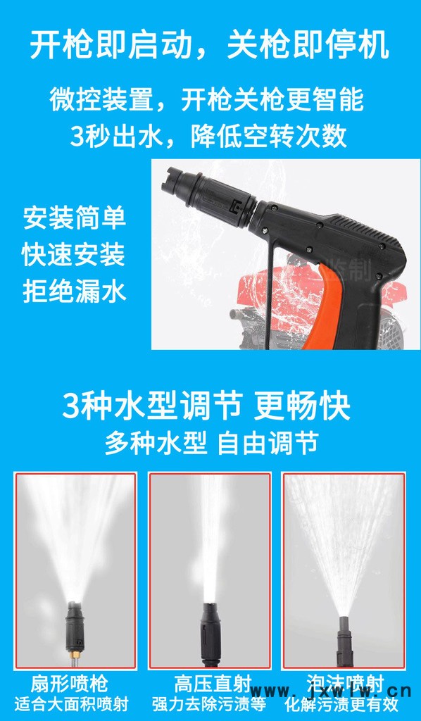 家用高壓洗車機(jī)保修: 水泵保修一年,終身維護(hù),其他配件保修三個月! 注意:本家用高壓洗車機(jī)不能長時間連續(xù)使用。
