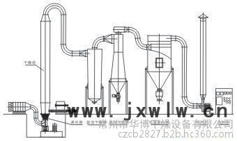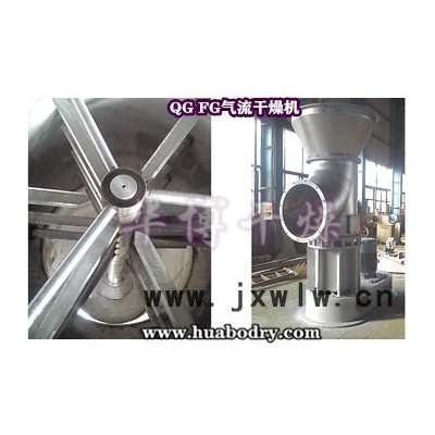 干燥后的成品從旋風(fēng)分離器排出,一小部分飛粉由旋風(fēng)除塵器或布袋除塵器得到回收利用。Q型氣流干燥器是負(fù)壓操作,物料不經(jīng)過(guò)風(fēng)機(jī);QG型氣流干燥器是正壓操作;物料經(jīng)過(guò)風(fēng)機(jī)帶有粉碎作用;FG型氣流干燥器是尾氣循環(huán)型;JG型氣流干燥器是強(qiáng)化型氣流干燥器,其集閃蒸干燥 與氣流干燥為一體。
