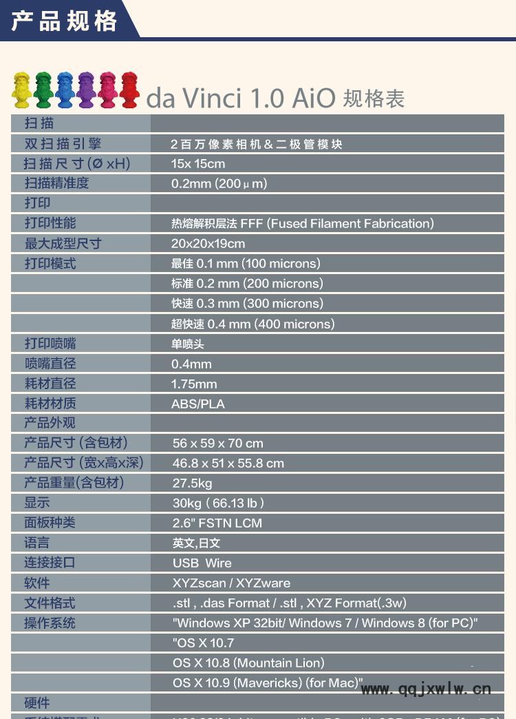 型號(hào) | da Vinci 1.0 AiO |