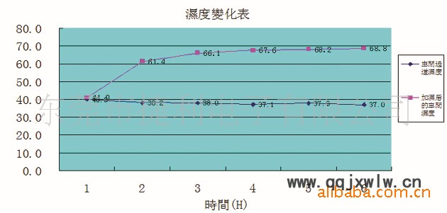 1.加濕一小時(shí)后,車間濕度由41.0%RH升到61.4%RH,上升速