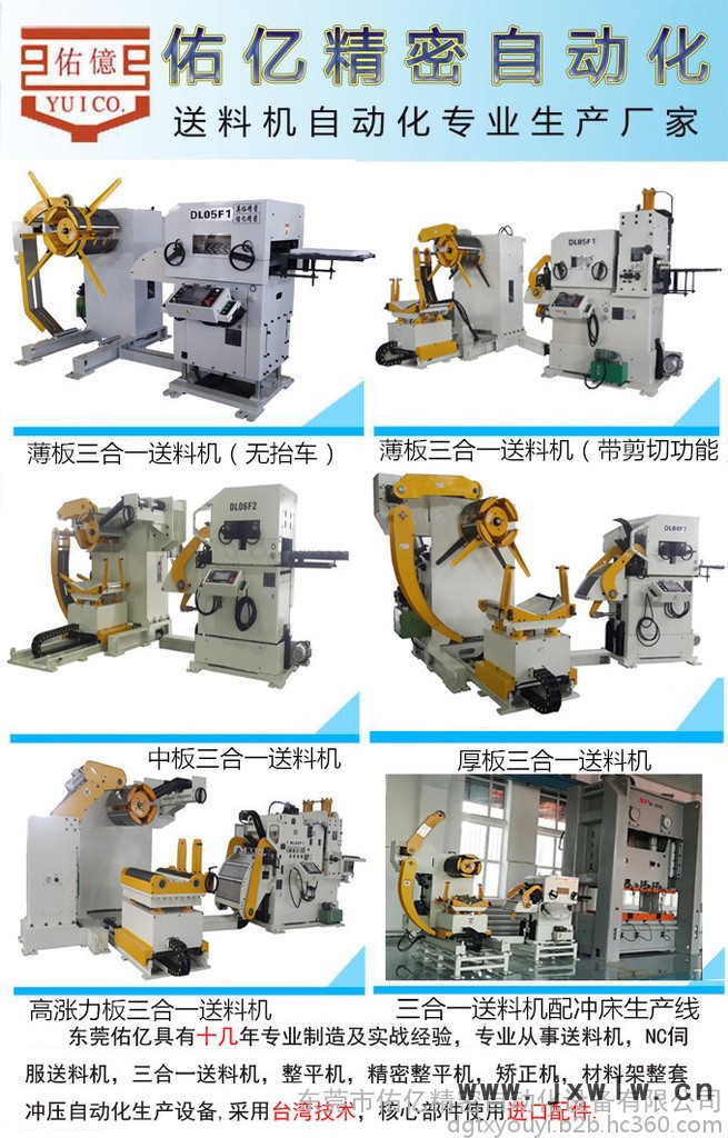 【東莞佑億】18年專注沖床周邊設(shè)備,沖床自動送料機,左右偏擺送料機,三合一送料機,NC伺服送料機,二合一整平送料機,數(shù)控送料機,整平機,材料架整套沖床周邊自動設(shè)備。東莞佑億產(chǎn)品引進臺灣選進技術(shù),使用進口配件,質(zhì)量好,故障率低。全國各地有公司,服務(wù)有保