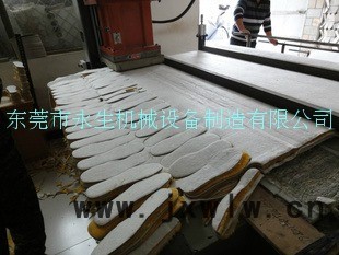 YS-40T/63〞,噸位:40T,有效臺面:610*1600,沖程:50-250,電機(jī)功率:3kw,機(jī)械尺寸 mm : 2330×1320×1260。 本機(jī)適合裁斷:皮革、塑膠、泡棉、布料、紙板、合成纖維等非金屬物料。四柱式雙油缸機(jī)構(gòu)設(shè)計(jì),剛性佳,能有效確保機(jī)械之平面精度,裁斷面的 任何位置均保持穩(wěn)定之裁斷力輸出。 間斷式單次行程操作、雙手按鈕開動,設(shè)有緊急停止裝置,確保操作安全。刀模設(shè)定簡捷、準(zhǔn)確、裁斷力高速容易。 自動潤滑系統(tǒng),可確保機(jī)器精密度與提高機(jī)器耐用度。可按客戶要求,訂做各種規(guī)格型號的裁斷機(jī)
