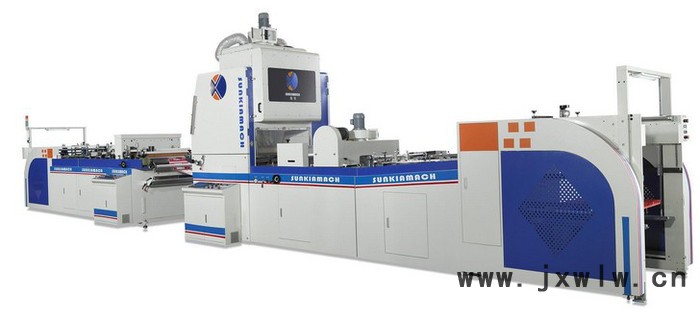 此為OPP薄膜覆膜機,針對水性膠水所設(shè)計之機型,亦可使用油性膠水及預(yù)涂膠水,一機三用。先于薄膜上涂布水性膠水后經(jīng)過大干燥輪進行烘干,同時自動機將紙張送至貼合本機,采用貼合輪加熱及加壓方式將已上膠之薄膜貼合與紙張表面,大干燥輪和貼合輪采用熱死循環(huán)系統(tǒng),加熱快控溫穩(wěn)定準確,貼合好之成品可選擇經(jīng)過卷取成狀或經(jīng)由圓盤式切刀將膠膜切出缺口經(jīng)過拉斷輪拉斷后,選擇人工收紙或自動收紙。專為環(huán)保概念設(shè)計之水性膠水覆膜機,可減少二甲苯及廢氣的排放,深受先進國家用戶喜愛。