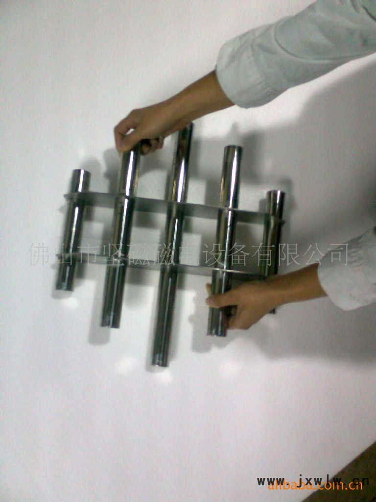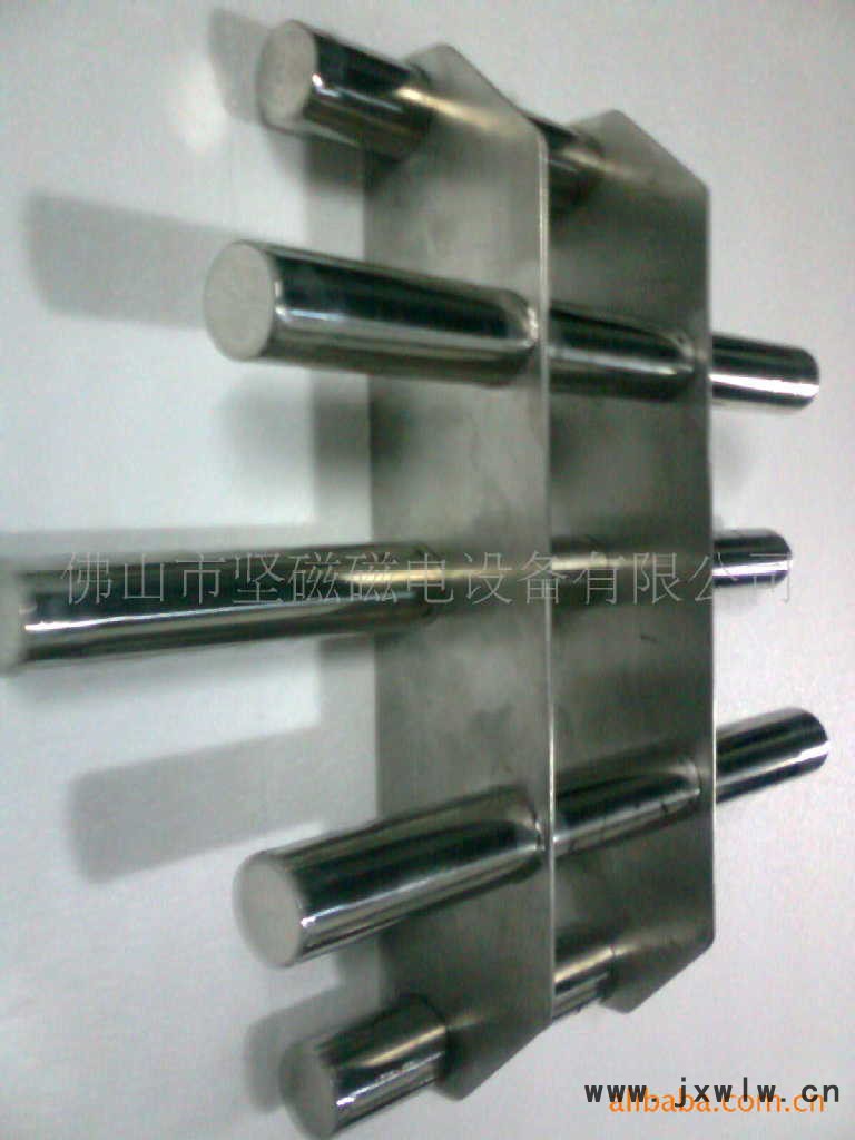 磁棒是采用優(yōu)質(zhì)不銹鋼管和高B值稀土合金釹鐵硼,并采用特殊的制作方法制作而成??梢越M合在固定架上,構(gòu)成磁性過濾器。當含鐵的物質(zhì)通過時,受到磁力棒的吸引,將含鐵的物質(zhì)牢固的吸附在磁棒的管壁上,以保證設(shè)備的完好和產(chǎn)品的安全。