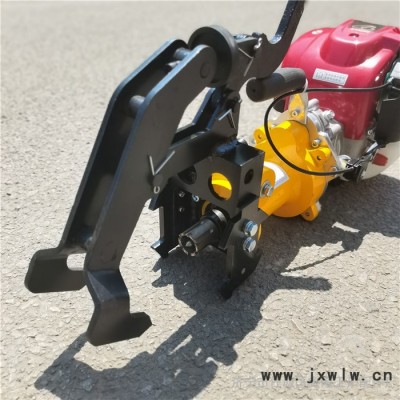 鋼軌鉆孔機(jī)是為鐵路鋼軌鉆孔用的機(jī)具。鋼軌鉆孔機(jī)在汽油發(fā)動(dòng)機(jī)(電機(jī))高速旋轉(zhuǎn)時(shí),其扭矩經(jīng)過(guò)離合器傳給減速箱,減速箱輸出軸上即裝有鉆頭,使鉆頭旋轉(zhuǎn)。與此同時(shí),振動(dòng)進(jìn)刀機(jī)構(gòu)的操縱手柄,通過(guò)蝸桿蝸輪、齒輪齒條的傳動(dòng)系統(tǒng),帶動(dòng)鉆頭進(jìn)刀或退刀,完成鋼軌鉆孔作業(yè)。