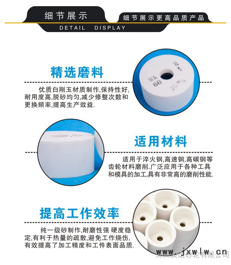 白剛玉砂輪適用于材料較硬、熱敏感性較強(qiáng)剛才的磨削。如淬火鋼、高碳鋼、一半高速鋼、合金鋼等的磨削。主要用于工具、刃具、磨具、齒輪、螺紋、薄壁零件等的磨削及成型磨削。