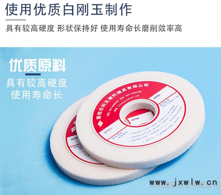 白剛玉的硬度略高于棕剛玉,韌性則比棕剛玉低,在磨削時,磨粒容易碎裂,因此,磨削熱量小,適宜制造精磨淬火鋼、高碳鋼、高速鋼以及磨削薄壁零件用的砂輪,成本比棕剛玉高。