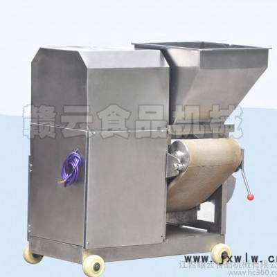 魚肉采取機/蝦殼分離機的結(jié)構(gòu)原理及特點:魚肉采取機的傳動方式是:電動機通過三角帶---齒輪---帶輥,分別把動力傳遞給聚胺脂尼龍帶及不銹鋼采取筒,并使其運轉(zhuǎn).魚肉采取機采取魚肉的過程是:人工把待加工的魚先去掉魚頭和取出魚肚中的內(nèi)臟;對大魚,則需將魚剖分成兩半,并漂洗干凈.隨后將待采取的兩片魚片投入到料斗內(nèi)(魚的剖分面朝向采取筒,背部貼近尼龍帶),魚在尼龍帶的帶動下進入采取筒與尼龍帶的擠壓區(qū)。被分離的魚,在尼龍帶與采取筒之間的擠壓力的作用下,魚肉被擠壓通過采取筒上的小孔進入分離筒內(nèi),隨后人工再將進入采取筒內(nèi)的魚肉碎粒刮到承接槽中.而魚皮及魚刺則被裝在機器上的刮刀從采取筒上刮下落在尼龍帶上,被尼龍帶帶入機器底部的收集槽中.尼龍帶與采取筒之間的壓力大小,是由位于機器頭部的尼龍帶的拉緊裝置來調(diào)節(jié)的。調(diào)節(jié)量的大小是根據(jù)魚種的不同而有所變化??稍谏a(chǎn)實踐中進行人工調(diào)節(jié)。過去傳統(tǒng)的魚糜加工中,手工去魚皮魚刺,既費時又費力,加工出的魚肉塊尚需要碎肉機、擂潰機、濾肉機和攪拌機等進行加工。而采用贛州市贛云食品機械廠提供的魚肉分離機和多功能高效魚糜機加工魚操作簡單方便。