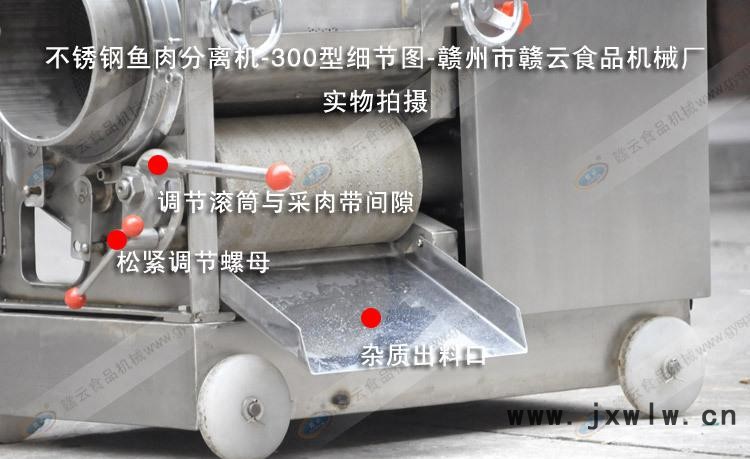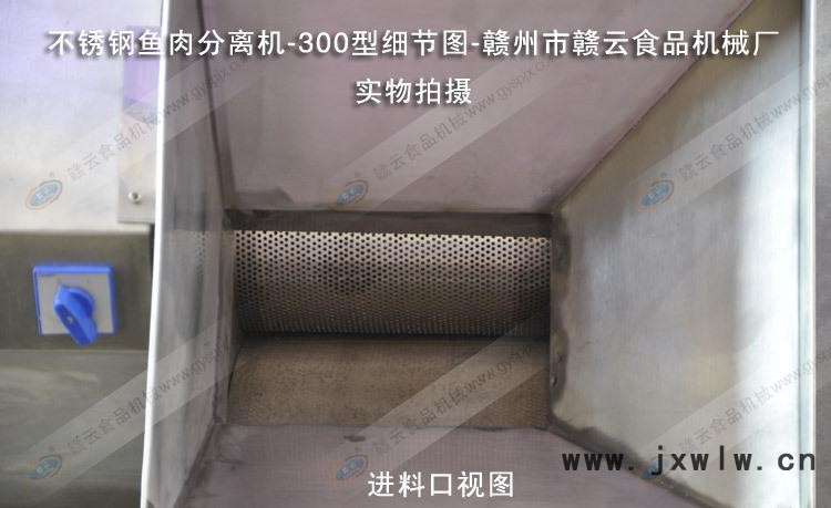 300型不銹鋼采肉機標配國標2.2kw銅線電機,可在220V或者380V電壓下使用、電動機保修一年,電機每分鐘1400轉(zhuǎn),可以將魚肉、魚骨、魚皮分離開,采取出干凈的魚肉。按整條魚的比例來算,一斤魚可以采取4兩魚肉,采肉量達到90%。這款機器不僅能夠采魚肉,還可以采蝦肉、泥鰍肉等。該機一小時可采肉量200斤到400斤左右,不管是大魚還是小魚都可以采,采肉孔徑3.0mm,采肉帶寬度300mm。采肉過程中如果采的肉不夠干凈,可通過調(diào)節(jié)手柄調(diào)節(jié)采肉滾筒和采肉帶之間的間隙來控制采肉率。