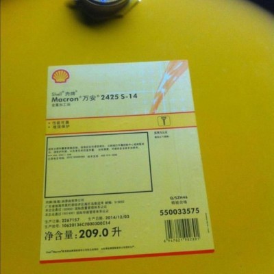 殼牌萬安2425 S-14金屬加工油 Shell Macron 2425 S-14 **金屬切削凈油 —不含氯和活性硫 —芳香烴含量低 —不含重金屬 —揮發(fā)性低 推薦應(yīng)用 殼牌萬安2425S-14是**金屬磨削加工凈油,適合于使用陶瓷或者氮化硼磨削輪,對高速鋼的凹槽磨屑加工。殼牌萬安2425S-14也可使用于螺旋傘齒輪齒面和各種鋼材和有色金屬的平面和柱面磨削加工。 性能特征 ·殼牌萬安2425S-14金屬加工油是**不含量氯的極壓金屬磨削加工凈油。殼牌萬安2425S-14由高度精煉的礦物基礎(chǔ)油和精選添加劑調(diào)配而成。添加劑具有的優(yōu)異的負(fù)荷能力,保證在延長期刀具使用壽命的同時(shí)獲得**的工件加工質(zhì)量?!づ迫f安2425S-14不含活性硫,不會使黃色金屬變色?!馕缎?,顏色較淡,便于個(gè)人觀察磨削過程。 典型數(shù)據(jù)