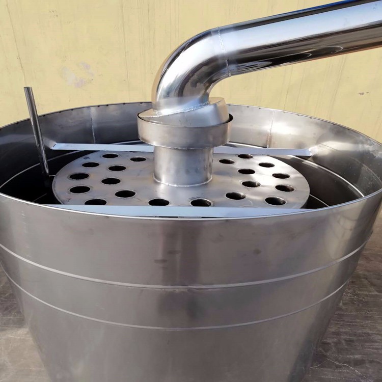 在上、下腔體之間,聯(lián)通上、下腔體的內(nèi)部;所述蒸汽入口設(shè)置在上腔體的頂部、出酒口設(shè)置在下腔體的底部;所述冷卻裝置設(shè)置在導(dǎo)管內(nèi)部或?qū)Ч鼙砻?。本?shí)用新型的管陣式套管狀的冷卻結(jié)構(gòu),在減小冷卻器體積的同時(shí),大大增加熱交換面積,冷卻效果明顯增強(qiáng),出酒率高;冷卻器內(nèi)部的多處錐面設(shè)計(jì)和“R”形過(guò)渡面設(shè)計(jì),使得冷卻器內(nèi)無(wú)尾酒囤積,避免冷卻器內(nèi)部囤積的尾酒與下一甑的**曲酒混合,大大確保了釀酒的質(zhì)量。結(jié)構(gòu)簡(jiǎn)單、裝配、使用和維護(hù)方便,易于大規(guī)模推廣和使用。