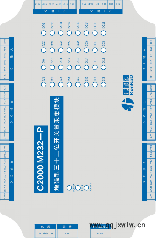 →16路開關量輸入(DI)、16路繼電器常開輸出(DO);