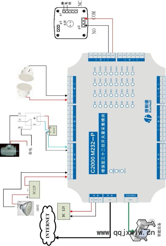 C2000 M232-P是增強型塑料外殼的RS232和開關量到TCP/IP的協(xié)議轉(zhuǎn)換模塊,它向上提供10M/100M自適應以太網(wǎng)接口,向下提供1個標準RS232串行口和32個開關量接點,在實現(xiàn)一路RS232到TCP/IP網(wǎng)絡和TCP/IP網(wǎng)絡到RS232的數(shù)據(jù)透明傳輸?shù)耐瑫r,通過網(wǎng)絡實現(xiàn)主動上傳式16路開關量采集(DI)與16路繼電器開關量輸出(DO)。