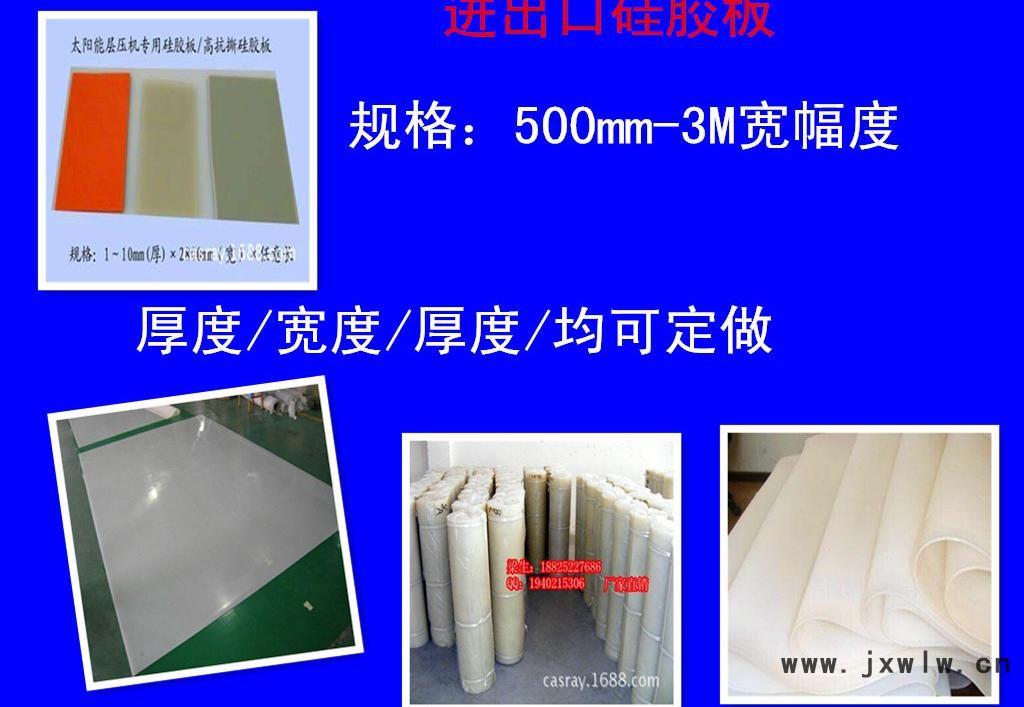 我們采用原材料(配以最新技術加入負離子、銀離子等)生產(chǎn)出來的硅膠板,色彩鮮艷,表面光滑,透明性高,具有優(yōu)良的耐高低溫性能,無毒環(huán)保,無氣味,強度高,抗撕裂,耐腐蝕,抗酸堿,耐磨,抗壓,耐老化,及優(yōu)良的絕緣性等等。