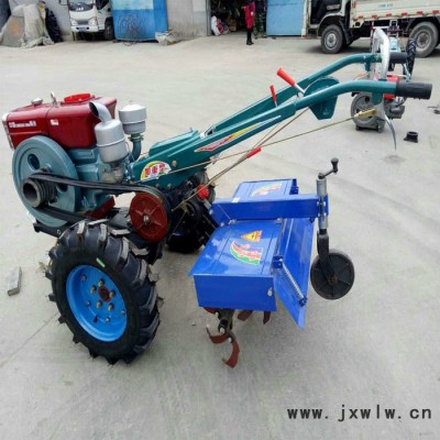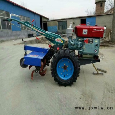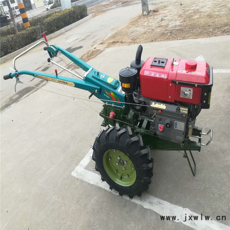 有利于爭取農(nóng)時,提高工效,并能充分利用拖拉機的功率。但對殘茬、雜草的覆蓋能力較差,耕深較淺(旱耕12~16厘米;水耕14~18厘米),能量消耗較大。主要用于水稻田和蔬菜地,也用于果園中耕。重型橫軸式旋耕機的耕深可達20~25厘米,多用于開墾灌木地、沼澤地和草荒地的耕作。工作部件(見圖)包括旋耕刀輥和按多頭螺線均勻配置的若干把切土刀片,由拖拉機動力輸出軸通過傳動裝置驅(qū)動,常用轉(zhuǎn)速為190~280轉(zhuǎn)/分。刀輥的旋轉(zhuǎn)方向通常與拖拉機輪子轉(zhuǎn)動的方向一致!11馬力柴油帶動馬力大旋耕碎土效果好!,出廠價不含物流運費!