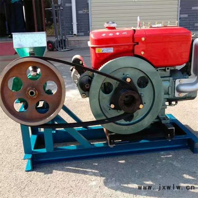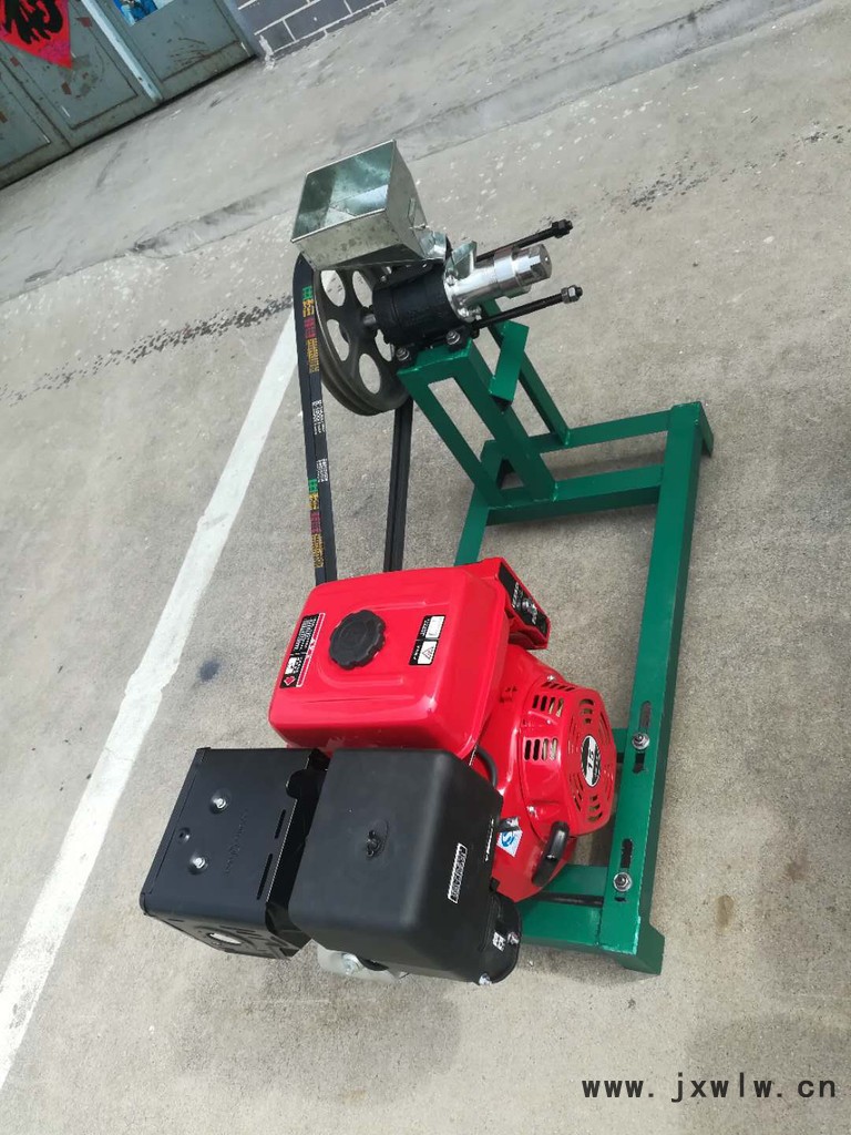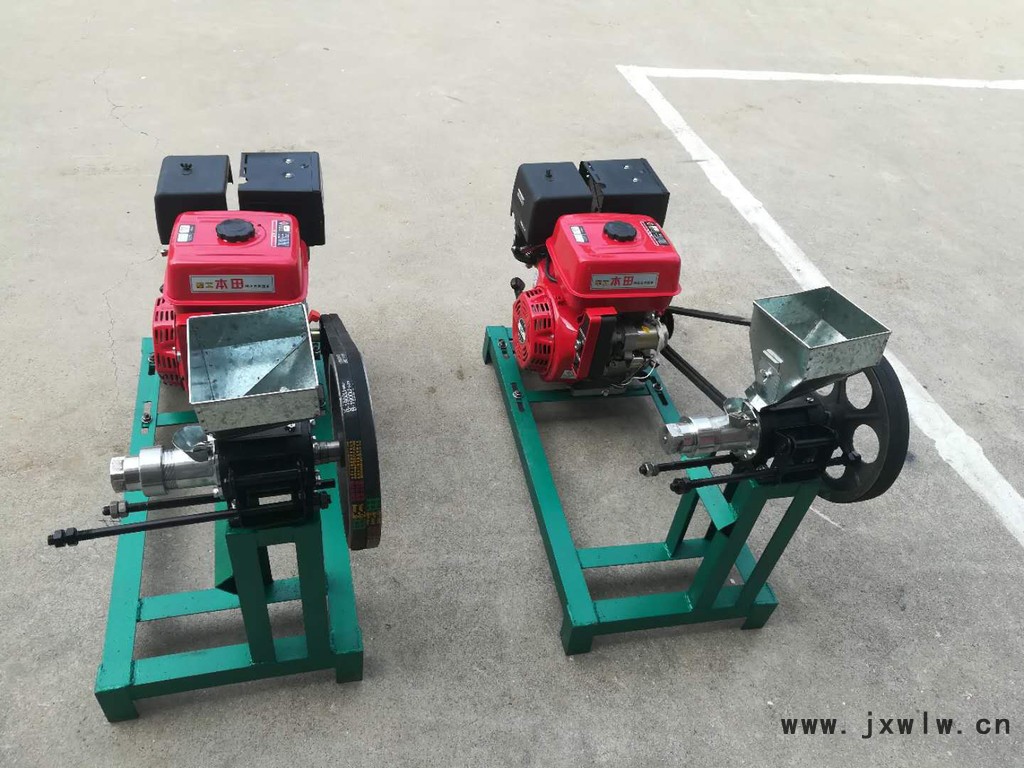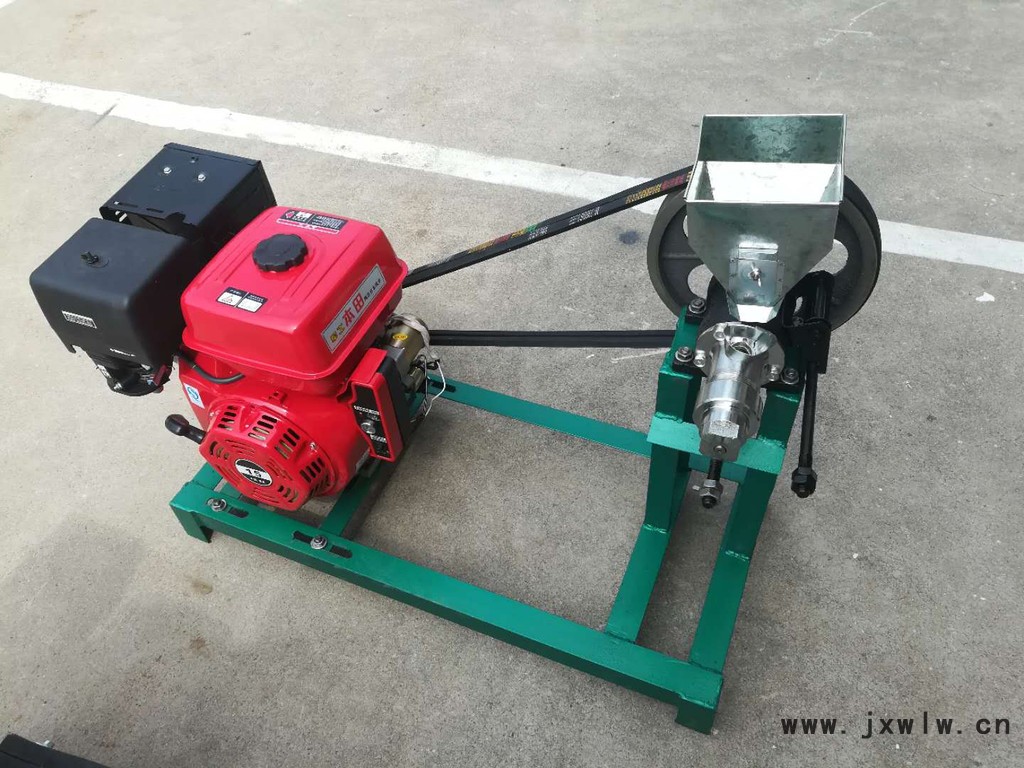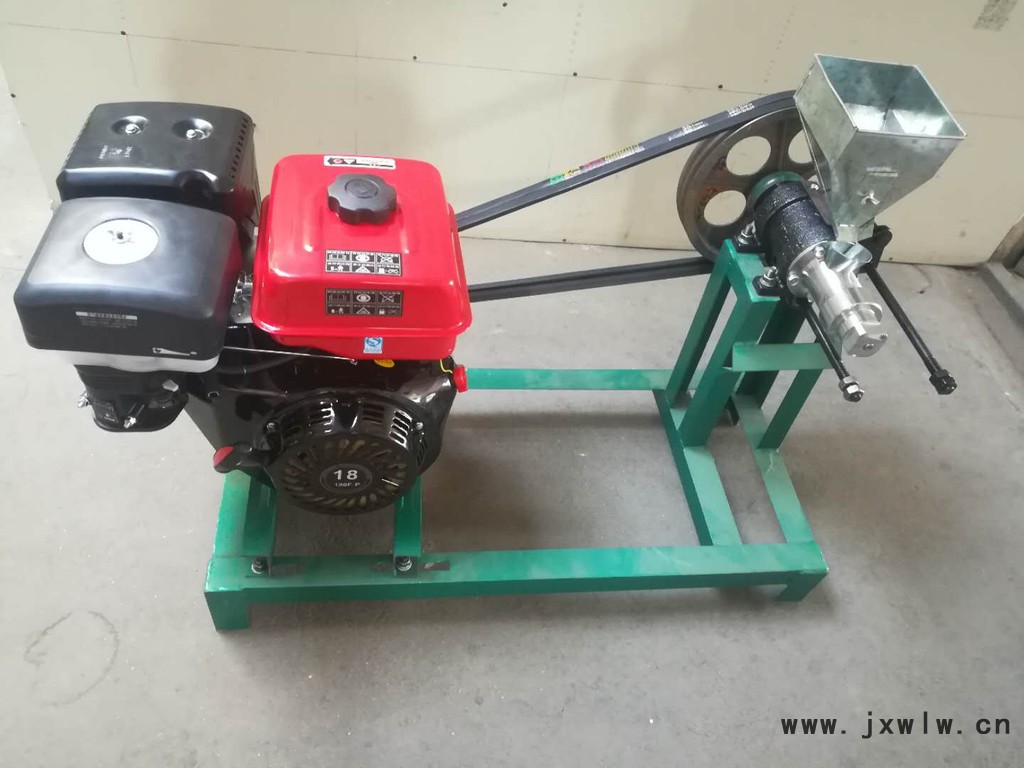 1、用方木或槽鋼,根據(jù)膨化機和電機腳孔尺寸做成長方形底座,把膨化機和電機固定在底座上,掛上三角帶并調緊(B型帶)。