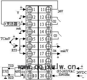 * 報警(O2),報警(O3)用戶可自行組態(tài)為上限報警或下限報警。