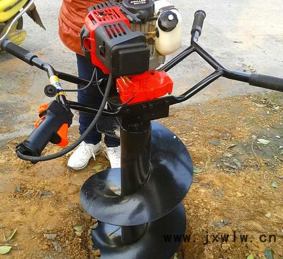 由小型通用汽油機,超越離合器,高減速比傳動箱及特殊設計的鉆具組成適合于<20度以下的坡地、沙地、硬質(zhì)土地的植樹造林或果樹種植,道路兩側綠化植樹等。苗木種植挖穴,畜牧圍欄埋樁挖穴;葡萄胡椒種植埋樁挖穴;果樹、林木施肥挖穴。挖坑直徑:,200mm250 mm 300 mm。400 mm 600 mm 800 zmm,操作每小時不低于80個坑,按一天工作8小時計算,一天可以挖640個坑,是人工的30多倍。讓人們從繁重的體力勞動解放出來,廣泛應用于植樹造林,栽種果林、籬笆、及秋季給果樹施肥等。動力強勁有力,外形美觀,操作舒適,勞動強度低,適合各種地形,效率高,便于攜帶及野外田地作業(yè)。