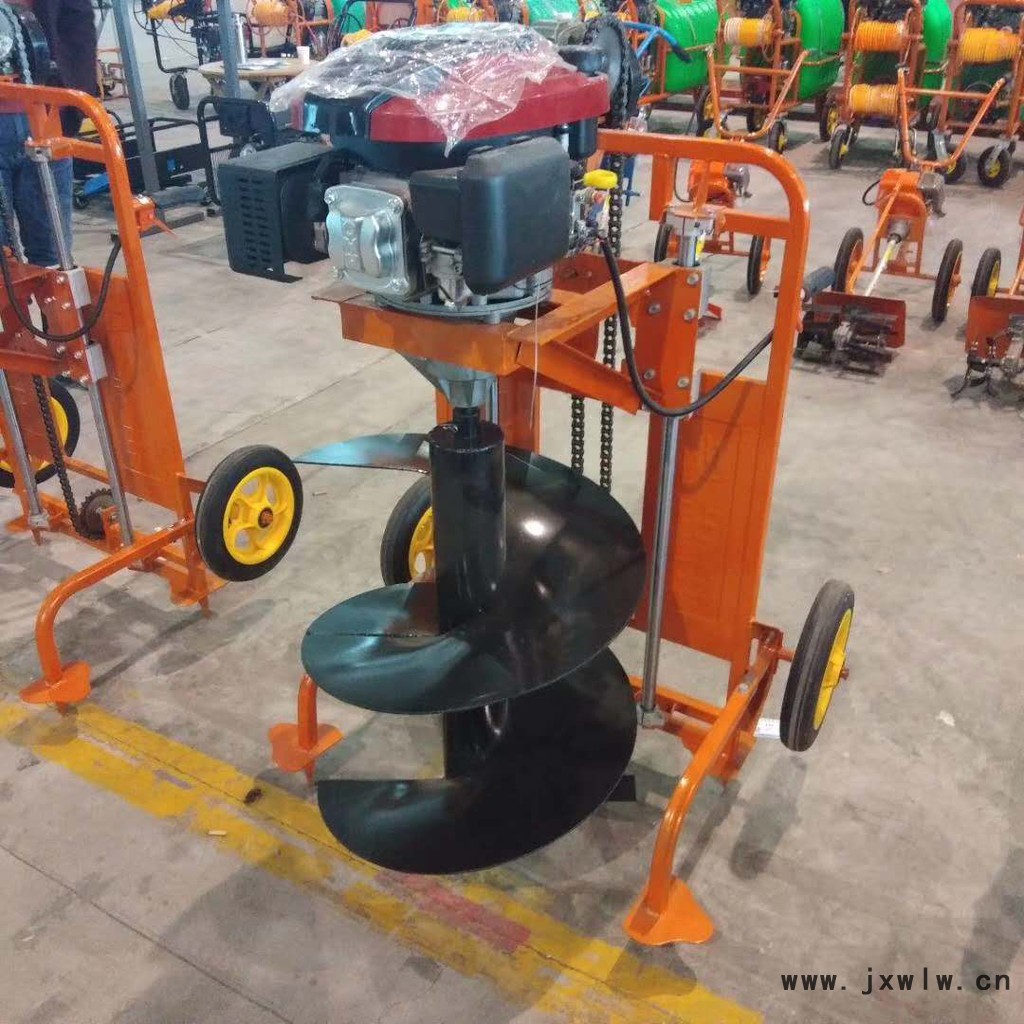 本廠生產的挖坑機安全可靠,性能優(yōu)異,本機滑桿上裝有壓力彈簧輔助人力起升鉆頭,省力、省時效率高,質量優(yōu),成本低,裝有腳輪使移動輕松便捷。