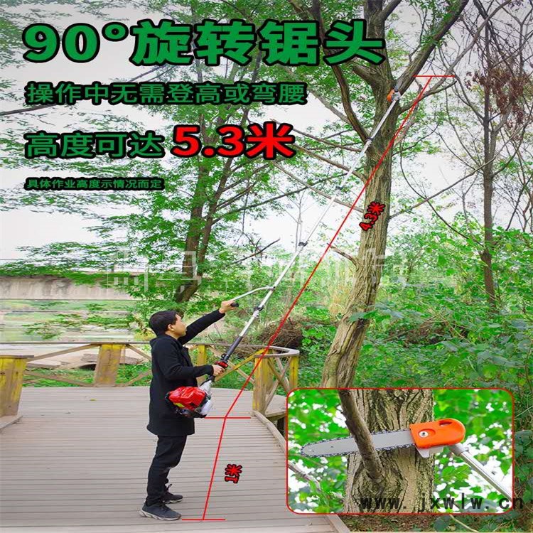 高枝油鋸用于森林采伐、造材、打枝等以及木場造材、鐵路枕木鋸截等作業(yè)。尤其適用于高處危險(xiǎn)之地的修剪.該產(chǎn)品具有功率大、振動(dòng)小、鋸切效率高、伐木成本低等諸多優(yōu)點(diǎn)。