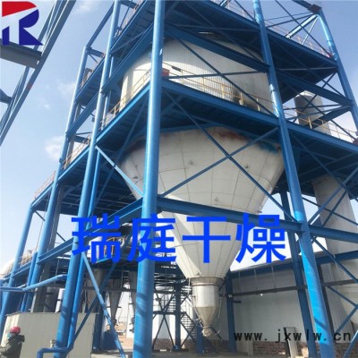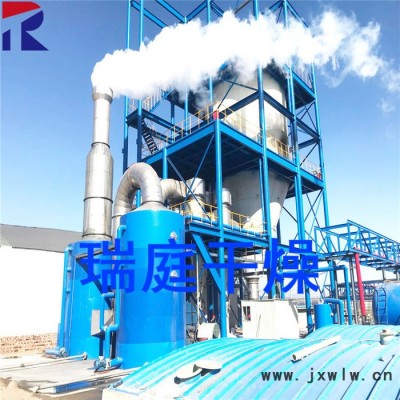 空氣經(jīng)過(guò)濾和加熱,進(jìn)入干燥器頂部空氣分配器,熱空氣呈螺旋狀均勻地進(jìn)入干燥室。料液經(jīng)塔體頂部的高速離心霧化器,(旋轉(zhuǎn))噴霧成極細(xì)微的霧狀液珠,與熱空氣并流接觸在極短的時(shí)間內(nèi)可干燥為成品。成品連續(xù)地由干燥塔底部和旋風(fēng)分離器中輸出,廢氣由風(fēng)機(jī)排空。