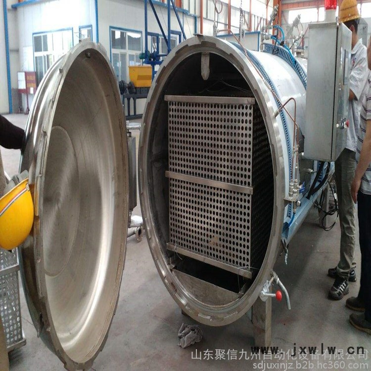 蒸煮鍋由鍋體、泵、小車、網(wǎng)盤、控制器等組成,按照控制方式分有手動、半自動、全自動,按照外形分單鍋、雙層、雙并、三聯(lián)串、五聯(lián)串等,按照加熱方式分為:電加熱、蒸氣加熱,按照材質(zhì)分為碳鋼、不銹鋼,按照殺菌方式分為水浴殺菌、噴淋殺菌、蒸氣殺菌。鍋蓋采用充氣式硅橡膠耐溫密封圈,密封性能好,使用壽命長。主要適應(yīng)于罐頭、八寶粥、肉制品、飲料、醫(yī)藥、菌包等應(yīng)用場所,對食品進行殺菌蒸煮,延長保質(zhì)期。