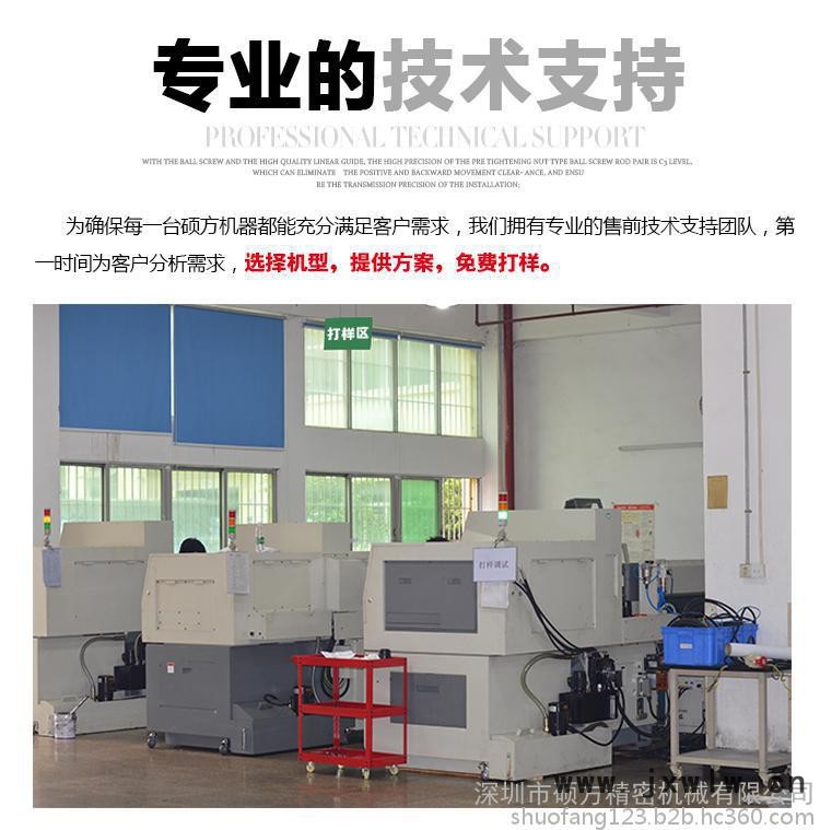 深圳碩方精密機械有限公司,專業(yè)生產(chǎn)數(shù)控走心機,具備車系復(fù)合功能,特別適合細(xì)長軸類零件及小型復(fù)雜旋轉(zhuǎn)零件的大批量、多品種、高精度的加工任務(wù)。公司產(chǎn)品精度及精度保持性高,主要配套零部件均采用國際知名品牌,生產(chǎn)工藝及技術(shù)處于國內(nèi)**地位。