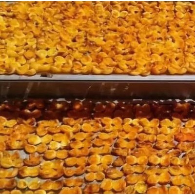 自然干制: 果實(shí)熏硫后即放置在曬場(chǎng),在日光下曝曬,到5~7成干時(shí),疊置陰干至所要求的干燥度。適度干燥的杏干,應(yīng)該是肉質(zhì)柔軟,不易折斷。用手緊握后松開(kāi),彼此不易黏著,將個(gè)別果片放在兩指間捻壓,沒(méi)有汁液滲出。