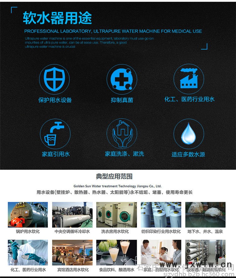軟水器一般應(yīng)用在反滲透裝置前,起到降或去除水中Ca2+、Mg2+離子的作用,延長反滲透系統(tǒng)發(fā)生無機鹽結(jié)垢的時間,保護反滲透膜系統(tǒng)。應(yīng)用于鍋爐水軟化、化工用水、賓館、洗衣房、生活用水、紡織行業(yè)、以及反滲透預(yù)處理等場合。