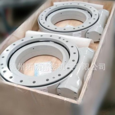 重型回轉(zhuǎn)式減速器采用蝸輪齒面回轉(zhuǎn)支承與蝸桿一體化結(jié)構(gòu)設(shè)計(jì),可采用液壓馬達(dá)或電流電機(jī)驅(qū)動(dòng)回轉(zhuǎn)式減速器進(jìn)行旋轉(zhuǎn)。