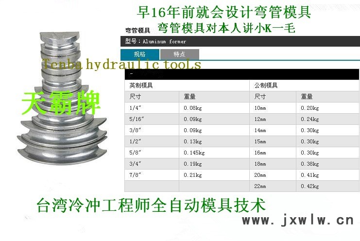 7 、配置模具: 1/2" 、 3/4" 、 1" 、 11/4" 、 11/2" 、 2"