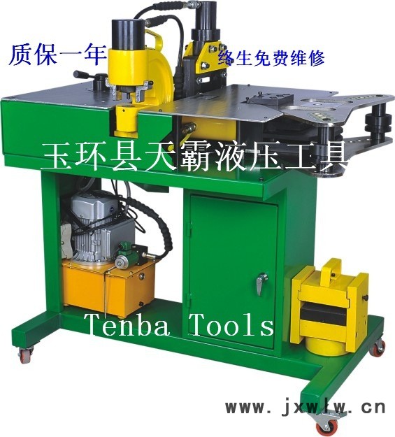 功能:銅鋁排剪切、沖孔、平立彎曲、壓花.這是一機體組合多項功能的專業(yè)設計,**的考量避免人力浪費,即省工時,符合一貫作業(yè)的流程,讓從事人員得心應手,產(chǎn)生高效率、高品質(zhì)的**作品; 手動控制方向閥清晰調(diào)配各工作機的功能.;整套設備包括電動液壓泵、切排機、沖孔機、平立彎排機及壓花機全部一體化地安裝于流動工作車上.利于在車間或現(xiàn)場的流動作業(yè).本機靈活性高,體積小而功能強,生產(chǎn)能力及工作效率極高。是制作大型的電控箱及輸配電建設工程的施工現(xiàn)場必備工具。