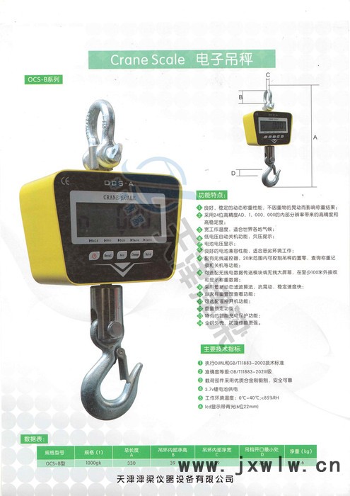 1、標(biāo)準(zhǔn)配置:OCS-A吊秤一臺(tái)