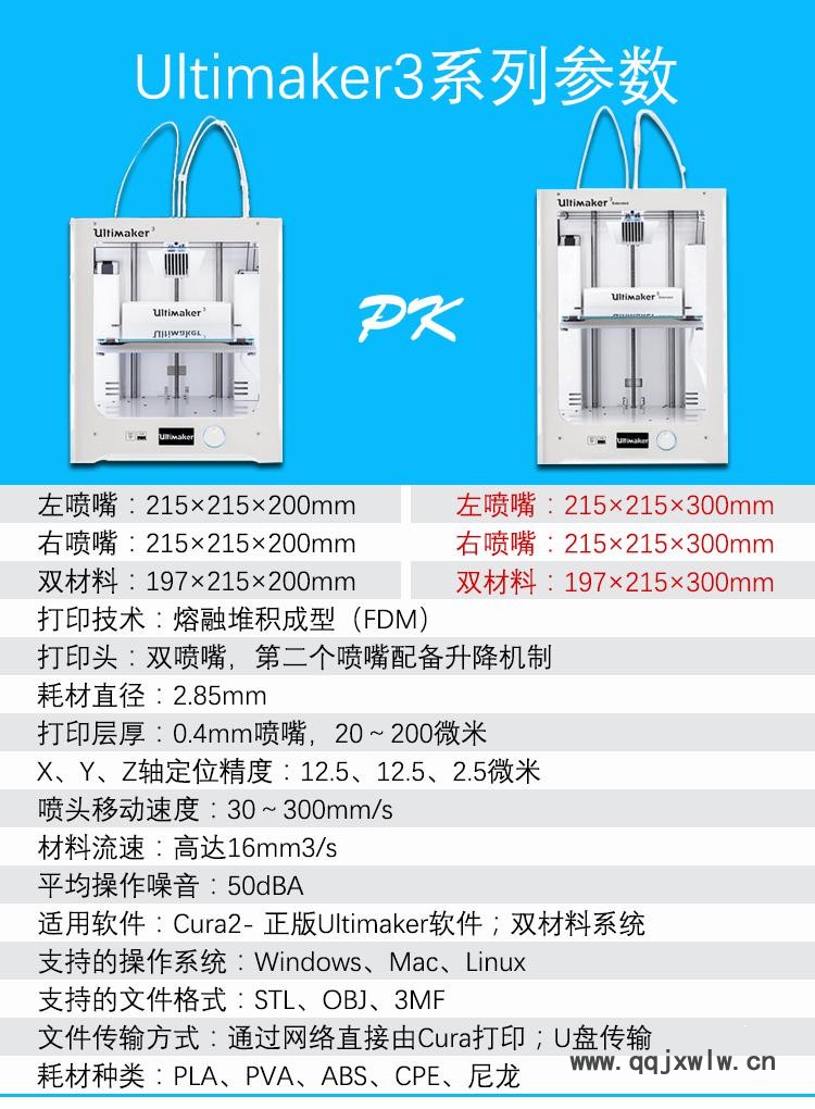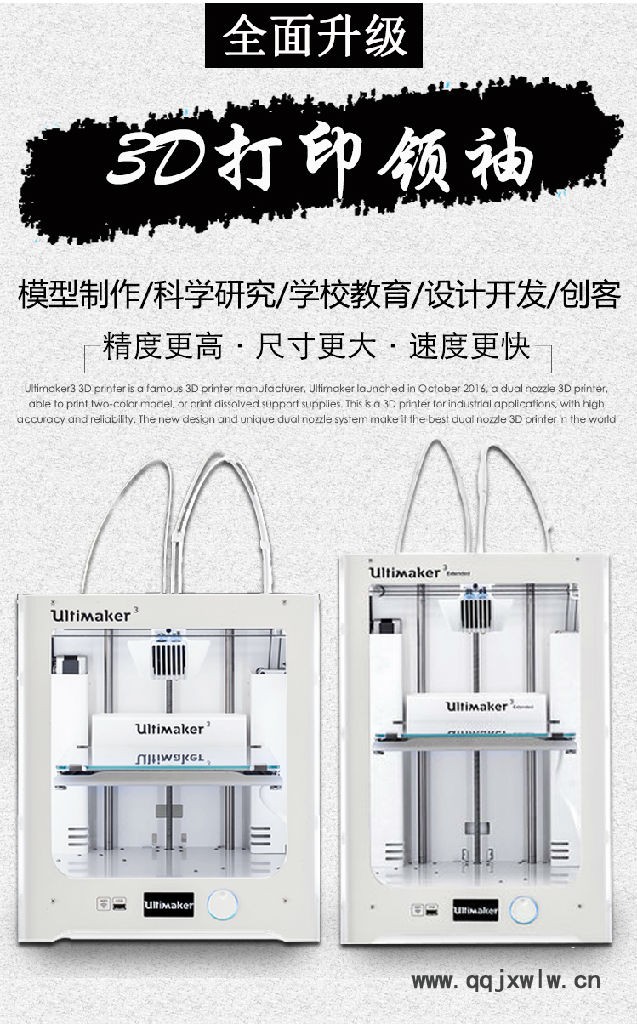 首頁 > 供應(yīng)產(chǎn)品 > Ultimaker3 Extended 3D打印機(jī) 工業(yè)級(jí) 雙噴頭 大尺寸 高精度 斷點(diǎn)續(xù)打