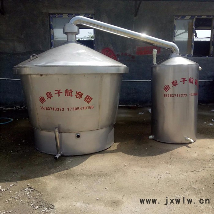 曲阜子航從小型家庭式50斤糧食至大型酒廠4000斤糧食的設(shè)備都有的,您可以根據(jù)自己所需的要求定做。子航釀酒設(shè)備,家用造酒機(jī)蒸鍋、鍋蓋、導(dǎo)氣管和冷卻器組成,用磚自砌灶臺,把蒸鍋?zhàn)钆_上,利用煤火 電加熱蒸餾出酒。純糧食自釀自蒸白酒工藝簡單,易于操作,人人能釀。釀制白酒的糧食主要有玉米、大米、高粱、地瓜干等,以上原料用一種或幾種混合粉碎后與生料酒曲和水?dāng)嚢杈鶆?,密閉發(fā)酵即可。在32-35度之間一般發(fā)酵7-10天,即可發(fā)酵完畢,進(jìn)行蒸酒。蒸酒時把發(fā)酵好的原料倒入蒸餾設(shè)備中,利用煤火煤氣等加熱,酒在78.4度時形成蒸汽,通過導(dǎo)氣管進(jìn)入冷卻器冷卻后,酒**流出來了。