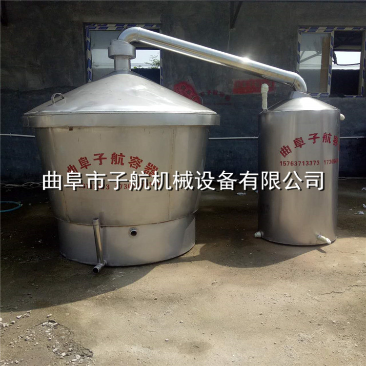 3.蒸餾:這款設(shè)備的酒料桶,可用來蒸飯,另因該設(shè)備的鍋爐上有兩個導(dǎo)汽管,只要另外配制一個蒸飯鍋,可在蒸酒的同時蒸飯,節(jié)約時間和燃料。