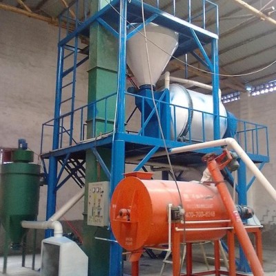 本設(shè)備由脈沖除塵器、投料斗、提升機、?;⒅閷S没旌蠙C、成品倉、體積計量包裝機、輸送縫包機、動力控制等系統(tǒng)組成。