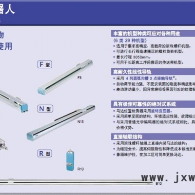 單軸機(jī)器人:特點(diǎn) 行程**短50mm-3050mm,負(fù)載**大120KG的產(chǎn)品線 采用高剛性導(dǎo)軌,精密滾壓的滾珠絲桿 伺服馬達(dá)的位置檢測(cè)器,采用高耐久性的旋轉(zhuǎn)變壓器 可交換馬達(dá)、導(dǎo)軌、滾珠絲桿等部品 發(fā)生故障時(shí),可進(jìn)行早期修復(fù)