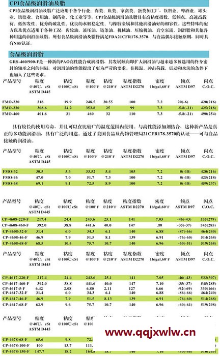 供應(yīng)食品級(jí)潤(rùn)滑油,CPI食品級(jí)潤(rùn)滑油主要有食品級(jí)液壓油、食品級(jí)齒輪油、食品級(jí)鏈條油及高溫合成鏈條油等產(chǎn)品,價(jià)優(yōu)品正。