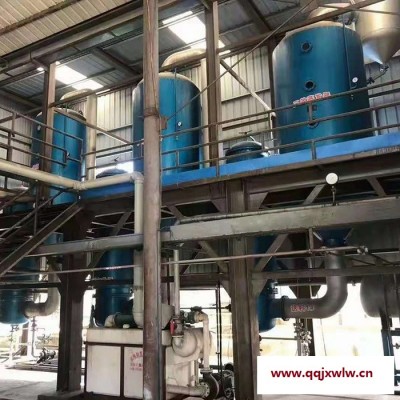 雙效MVR蒸發(fā)器的:雙效MVR蒸發(fā)器簡單來說是將兩個(gè)單效MVR蒸發(fā)器串聯(lián)在一起,將效蒸發(fā)器產(chǎn)生的二次蒸汽當(dāng)作加熱源,引入另一效蒸發(fā)器。要控制蒸發(fā)器內(nèi)的壓力和溶液沸點(diǎn),使其適當(dāng)降低,則可以利用效蒸發(fā)器產(chǎn)生的二次蒸汽進(jìn)行加熱。效蒸發(fā)器的冷凝處是效蒸發(fā)器的加熱處。雙效MVR蒸發(fā)器的流程:并流:兩效都加料都完成出料的模式,即各效都有結(jié)晶析出。一般用于飽和溶液的蒸發(fā)。逆流:原料由泵從效送入效,完成液由一效排出,料液與蒸汽逆向流動。一般適宜處理黏度隨溫度和濃度變化較大的溶液,不易處理熱敏性物料。順流(平流):溶液和蒸汽流向相同,都由一效順流到效。原料液用泵送入一效,依靠壓差,自動流入下一效,完成液從效用泵抽出。順流流程比較適宜處理在高濃度的情況下的熱敏性物料。雙效MVR蒸發(fā)器的組成:加熱器、分離器、冷凝器、蒸汽壓縮機(jī)、循環(huán)泵、真空系統(tǒng)、料液輸送泵、冷凝排水泵、操作平臺、電器儀表控制柜及閥門、管路等系統(tǒng)組成。