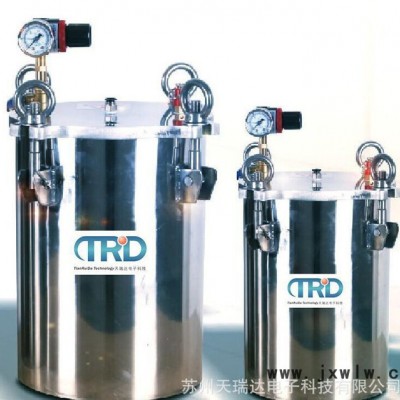 【產品詳細技術說明】液料壓力桶是專業(yè)用在大點膠量的場合,對保持點膠閥系統(tǒng)點膠的**度非常重要。每個液料壓力桶都配有精密恒壓調壓閥,維持從壓力桶至點膠閥的流體壓力。液料壓力筒的開關是簡單的夾緊方式,結構上內部面和下部面相同,可以使用內部容器。