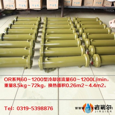 OR系列60~1200型冷卻器流量60L/min~1200L/min,重量8.5kg~72kg,換熱面積0.26m2~4.4m2。采用多管式,傳熱面積廣,良好的傳熱管,不漏油,裝配簡(jiǎn)易??刮廴?,適用于較臟和高粘度油液的冷卻,也適用于水對(duì)水、水對(duì)氣的熱交換。