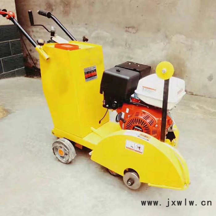 汽油馬路切縫機采用手推行走式切割送進。機頭主軸上安裝有金剛石鋸片,鋸片由電動或汽油機柴油機通過三角皮帶帶動。推把前端安裝有可調(diào)節(jié)切割深度的手輪,轉動手輪使前行走輪升降,從而調(diào)節(jié)鋸片高度;機身上部有盛水水箱。鋸片切割機前,應擰開水管開關,使管頭向鋸片兩邊噴水以進行冷卻并清除切縫泥污。